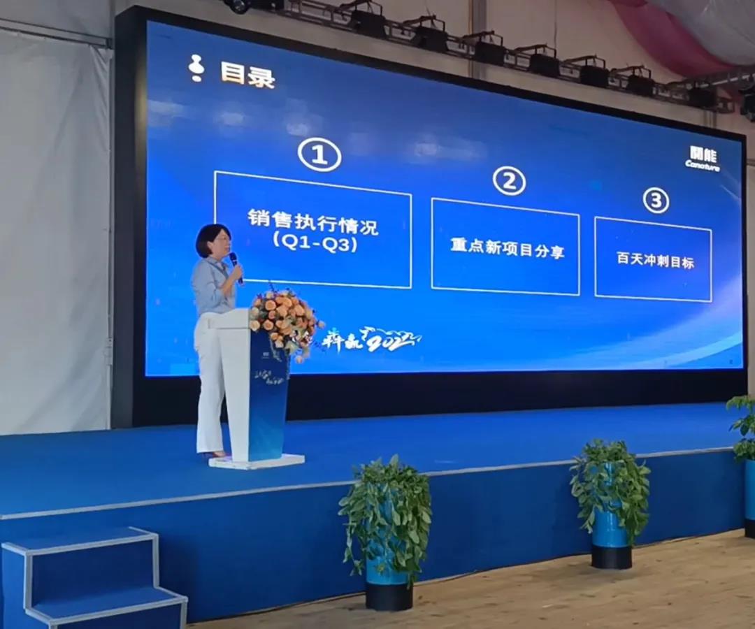會議首先進行前三季度開能集團經營業績總結和第四季度奮戰目標,各主要業務部門負責人分別上臺進行集團前三季度執行情況回顧和第四季度業績目標、行動計劃。隨后,由各部門選派代表圍繞著市場深耕、智能制造、創新研發、實踐落地等主題進行分享。
