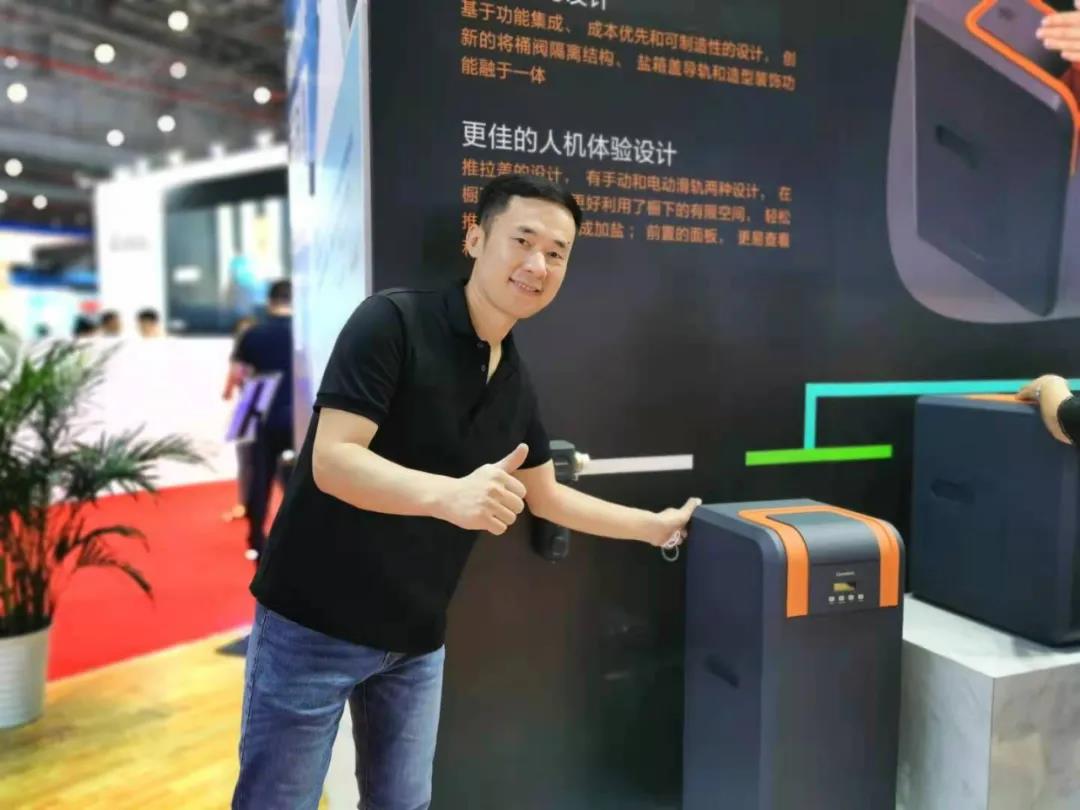 還有一款軟水機,設計靈感來源于中國元素“硯臺”,將品牌logo設計成呼吸燈狀態,呼吸之間為產品賦予了靈動與生命;面板前置設計則融入了達利的畫作《記憶的永恒》。結構設計也處處彰顯“工匠精神”:通過創造性的將機身上蓋分成一段式懸浮結構,解決了拆裝維護問題,同時加鹽口變得更大;這個產品同時榮獲了2020年度IF和紅點兩項大獎。