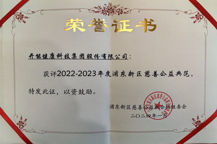 開能集團榮獲2022-2023年度浦東新區慈善公益典范(企業類)獎項