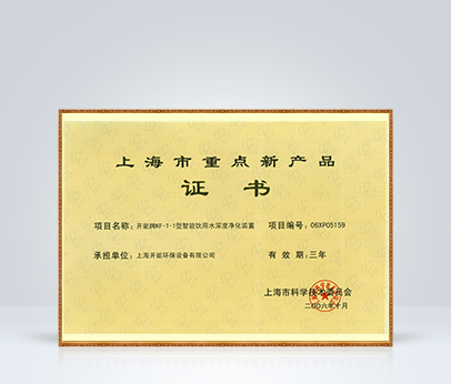 2006年開能牌KF-T-1型智能飲用水深度凈化裝置被評為上海市重點新產品