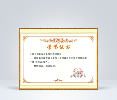 2017年榮獲第三屆中國(上海)上市公司企業(yè)社會責(zé)任峰會“合作共贏獎(jiǎng)”榮譽(yù)證書