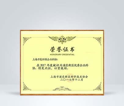 2017年榮獲浦東新區(qū)優(yōu)秀企業(yè)科協(xié)榮譽(yù)證書