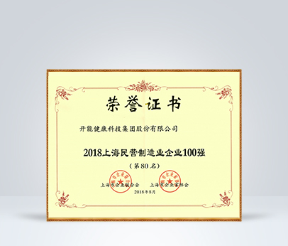 2018年被評為2018上海民營制造業(yè)企業(yè)100強(qiáng)